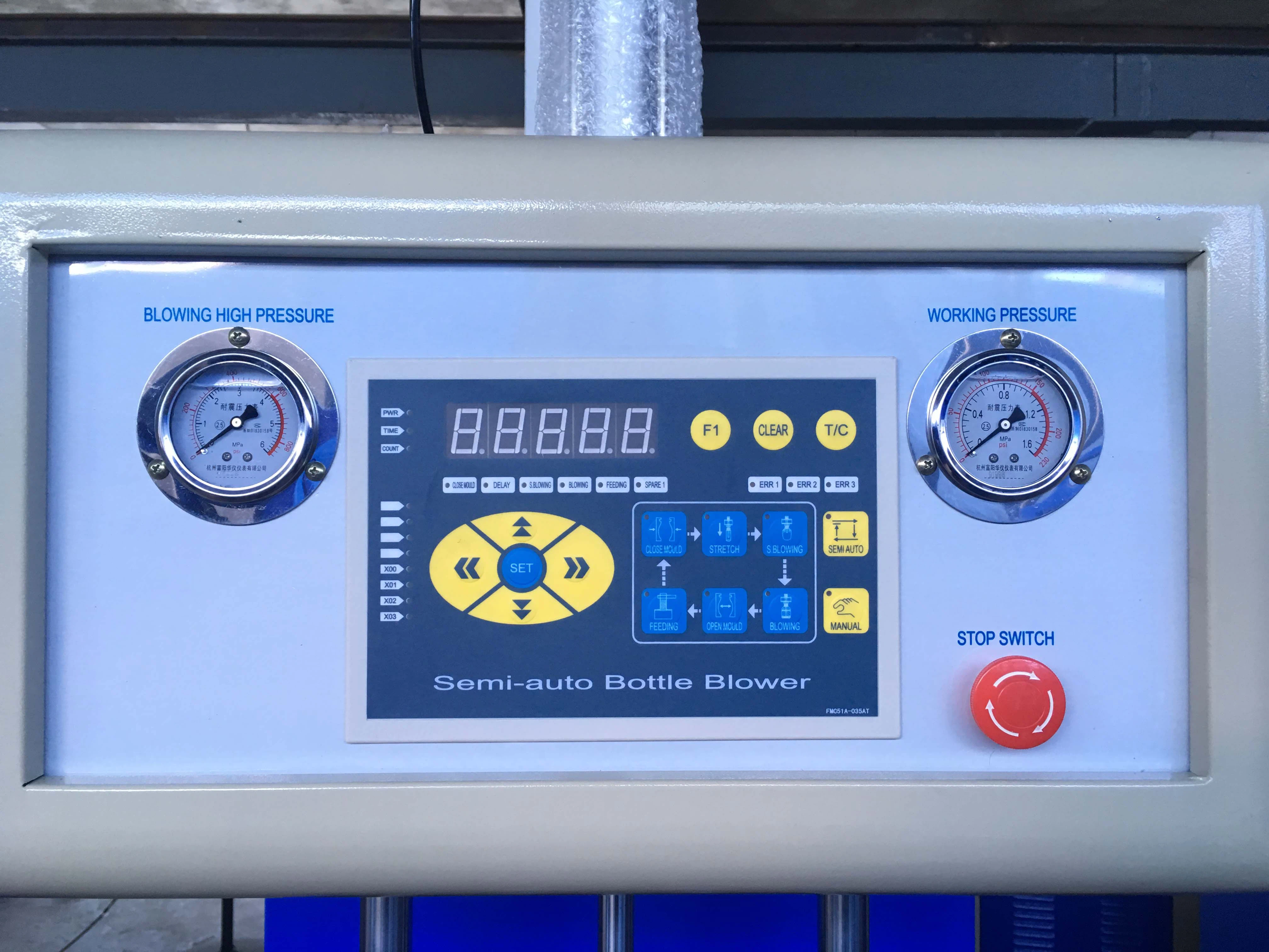 Denne maskine er velegnet til alle slags flasker, kosmetikflasker, håndspritflasker, medicinflasker osv. Vores maskinluftkredsløbssystem består af bevægelse og blæsning for at imødekomme behovene for forskellige lufttryk og også for at give stabilt højtryk . Mange dele af denne serie semi-auto blæsemaskine anvendes med den avancerede teknologi udviklet af os selv, og montering med komponenter af god kvalitet. SUN RISE luftrør, AirTAC reservedele og andre kinesiske mærker på vores maskiner.